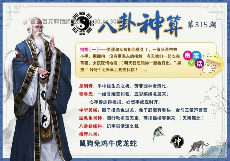 | 315期:男女两肖【男肖+羊兔】开:虎04准 |